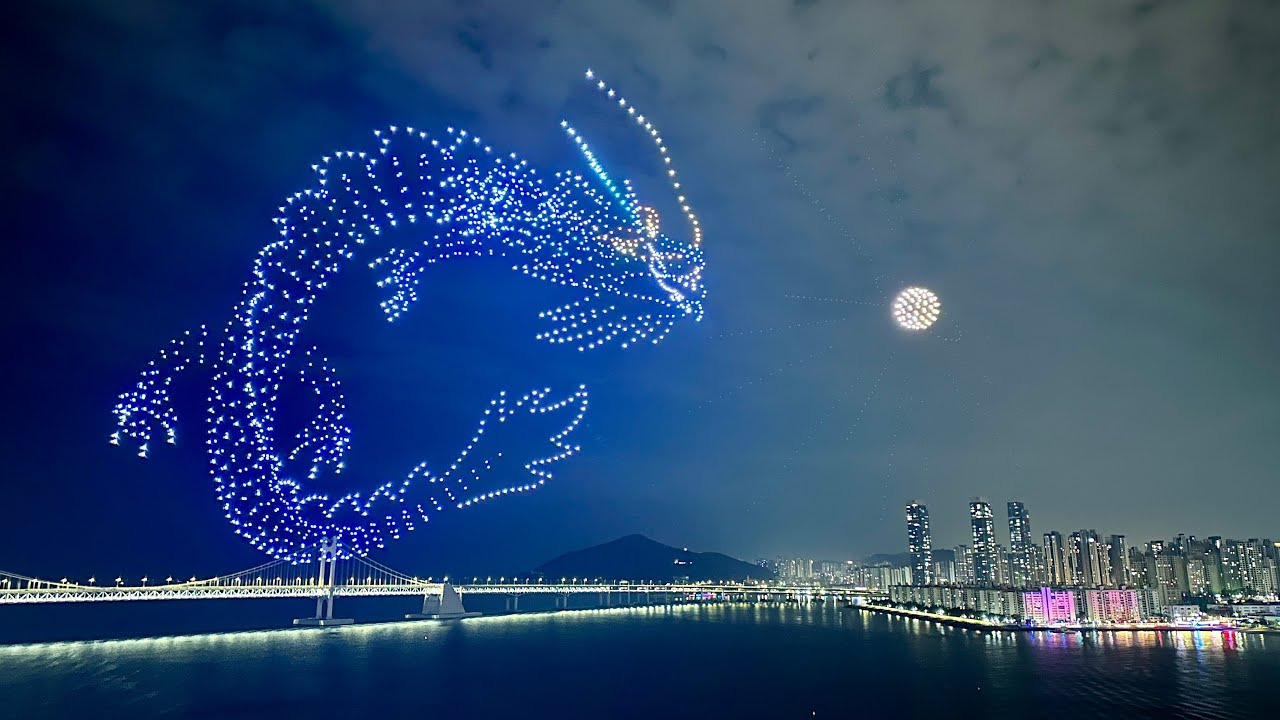 - 설명: 광안리 밤하늘에 펼쳐지는 다이내믹한 겨울 스포츠를 주제로 한 드론쇼입니다.