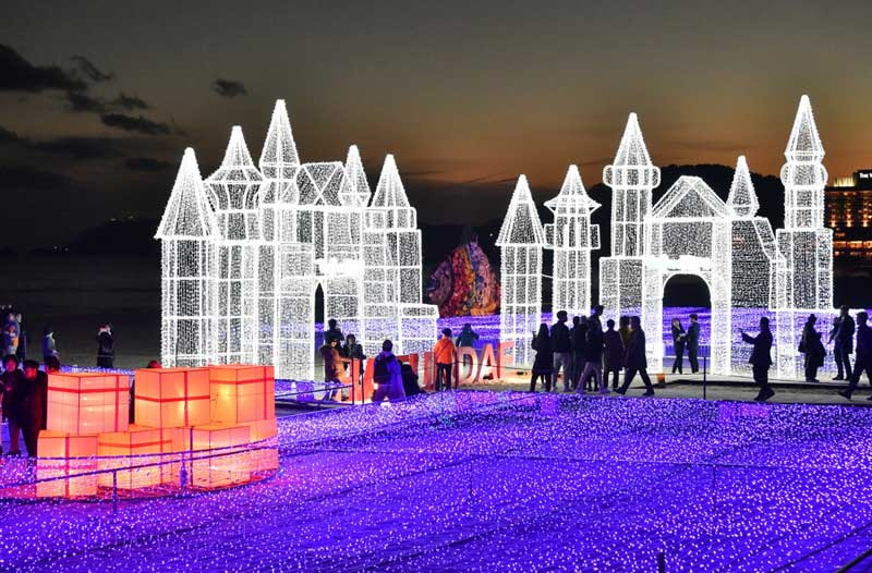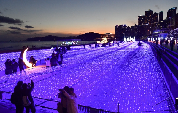 부산 해운대에서는 매년 겨울마다 빛축제가 열립니다. 해운대 해변을 따라 펼쳐진 화려한 조명은 추운 겨울밤을 따뜻하게 밝혀줍니다.