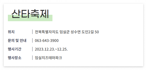 올해 겨울, 임실산타축제에서 사랑하는 사람들과 함께 아름다운 추억을 만들어보세요.